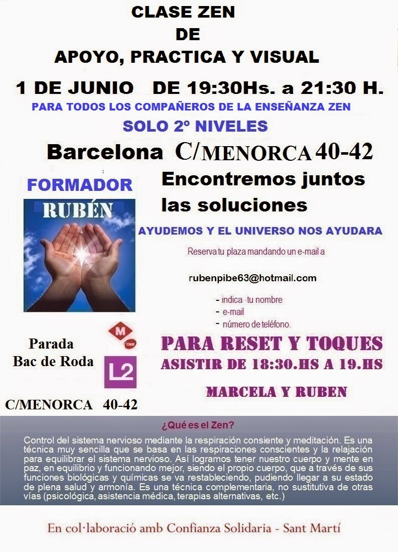 El próximo día 1 de junio, se realizara una clase de apoyo y practica zen, en la que se podrá aclarar dudas y realizar practica zen.